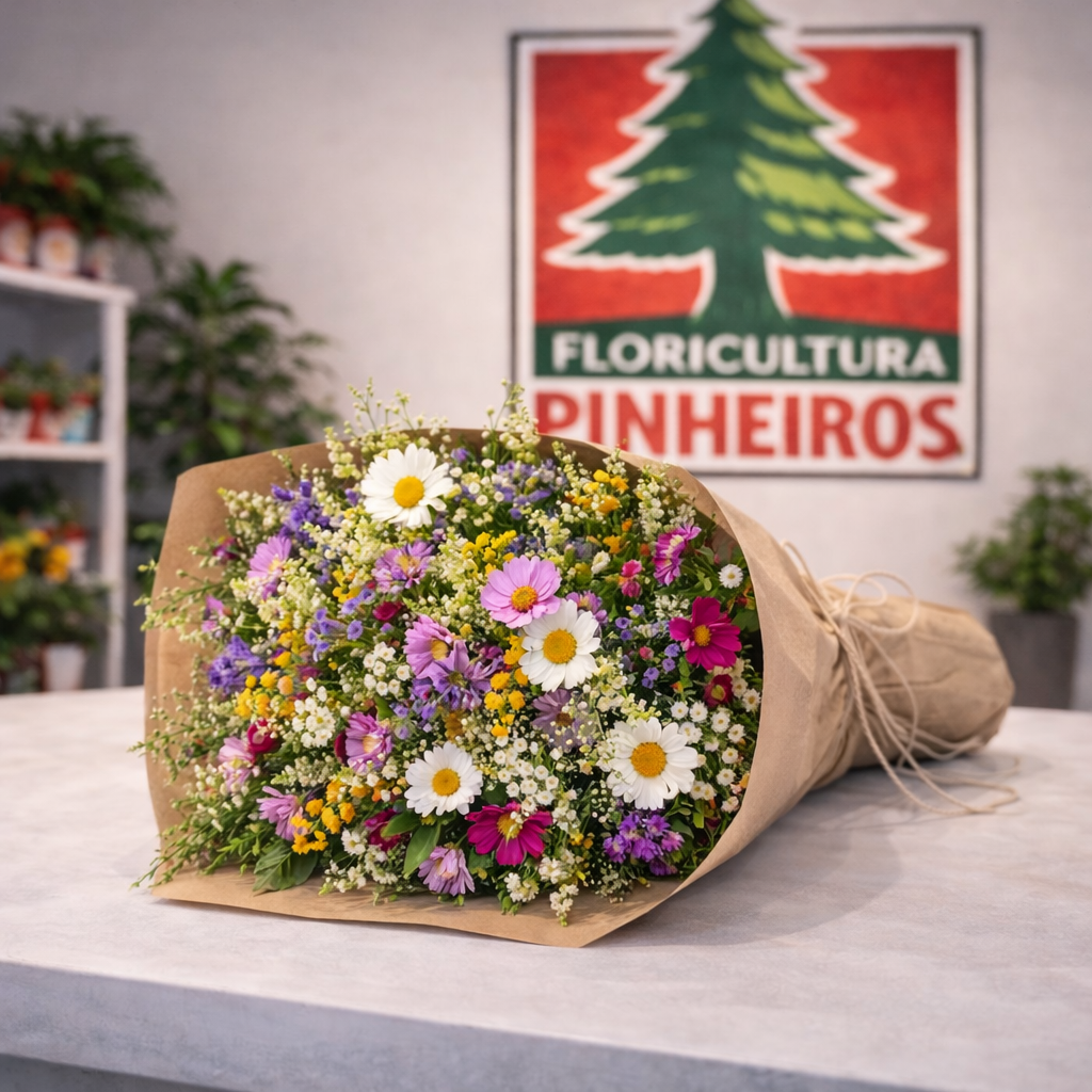Flores do Campo – Grande com mix de flores coloridas, montagem artística e folhagens selecionadas.
